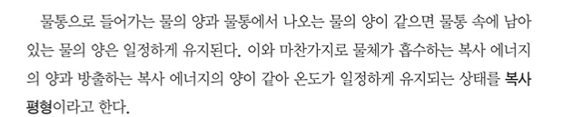 또한 복사 평형에 도달하는 온도는 흡수하는 에너지양과 방출하는 에너지양이 같을 때의 T이므로 아래와 같다.