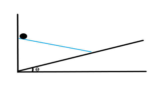 높이가 $h$인 지점에 있는 질량 $m$의 물체를 벽에서부터 막대를 이용해 경사각이 $θ$인 경사까지 굴릴 때 걸리는 최소 시간은? 그리고 그때의 막대의 길이는?