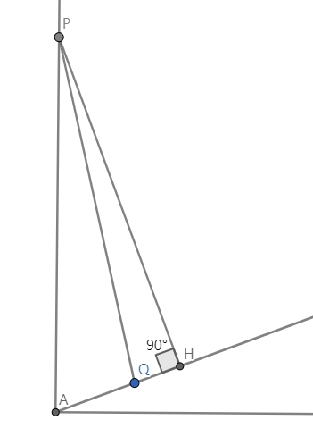$→ \overline{PQ}$가 $∠APH$의 이등분선일 때 $t$가 최소