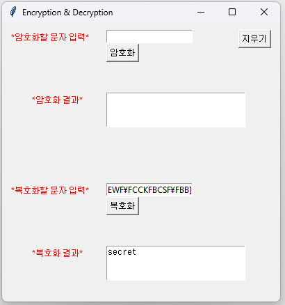 lb2 = Label(text='*암호화 결과*',fg='red')