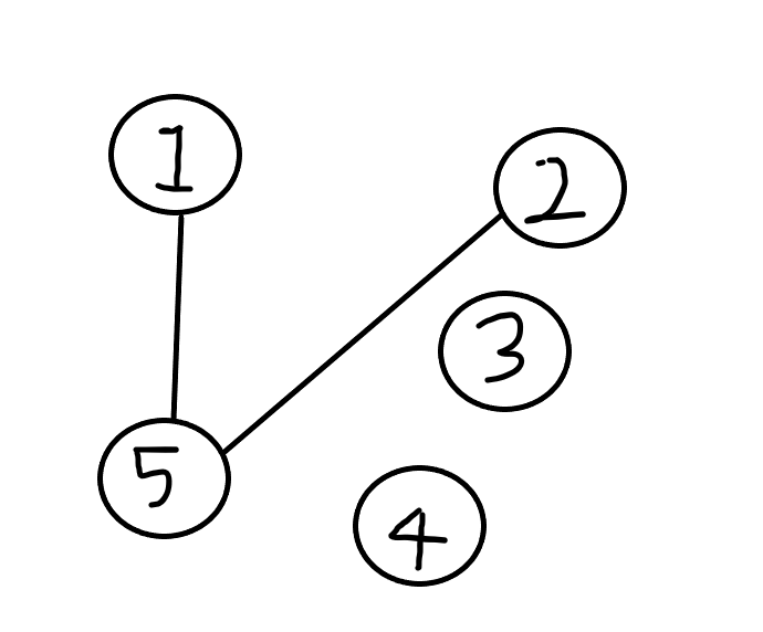 예시로 1번 노드와 5번 노드, 2번 노드와 5번 노드를 차례대로 이었다고 생각해보자.